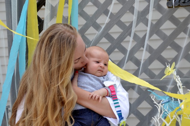 Наша сказка начиналась в 11 часов утра. И только в 9.30 дождь более ли менее прекратился. Хотя небо обкладывали еще подозрительные тучи 🙁 Я думала, что Айка передумает. Сама уже хотела дать ей отбой. Как тут увидела веселую девичью компанию декораторов — мама-старшая дочка-младшая дочка — у нас на пороге 🙂 Девочки все быстро надули-навертели-разложили-повесили..И за какие-то 30-40 минут наш двор превратился в веселую сказочную поляну.