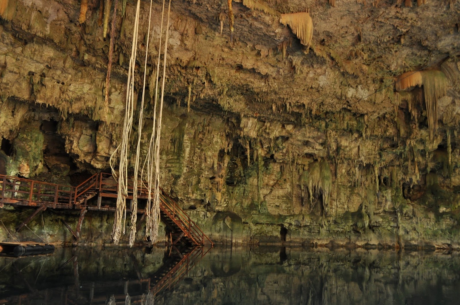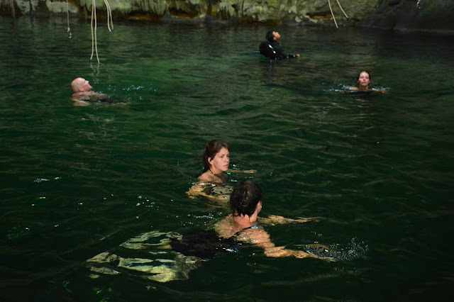 Мы переоделись в купальные одежды, искупались под специальным душем и спустились в прохладную пещеру с подземным озером. Вода в озере, естественно, пресная, чистая, почти питьевая.