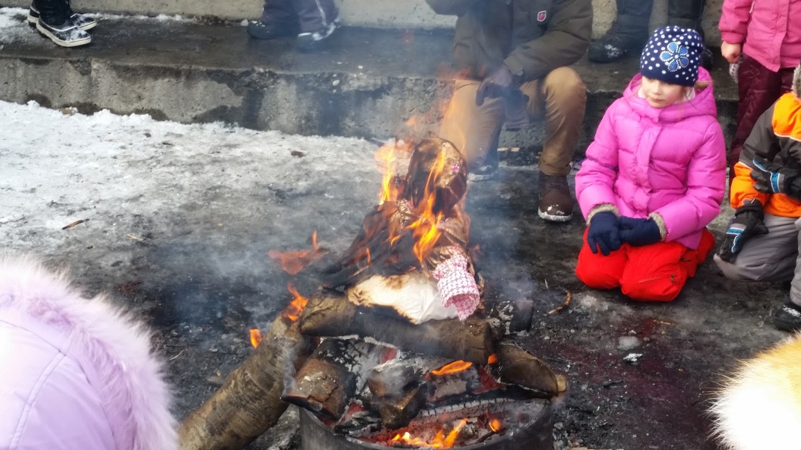 Пропев напоследок частушки и, как полагается, разные масленичные заклички, куклу водрузили прямо в центр костра!