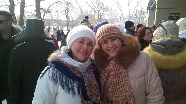 И, несмотря на мороз, наши калгарийские доблестные девушки отлично выступили перед замерзающей уже публикой 🙂 У кого-то, кто хорошо оделся в такой мороз и грелся чаем, хватало сил подпевать 😉