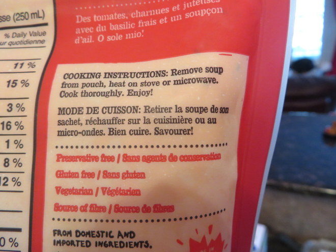 А потому эти супы очень удобно всегда иметь в доме на тот случай, когда вам некогда готовить, а кушать очень уж хочется:) У нас такие ситуации случаются довольно часто и потому такие супчики очень выручают. Они продаются не в жестяных банках, а в пакетах по 500 граммов, хватает на одну-две тарелки, в зависимости от того, насколько кто голодный:) Поскольку они как бы без консервантов, то срок хранения у них небольшой, чуть больше месяца.