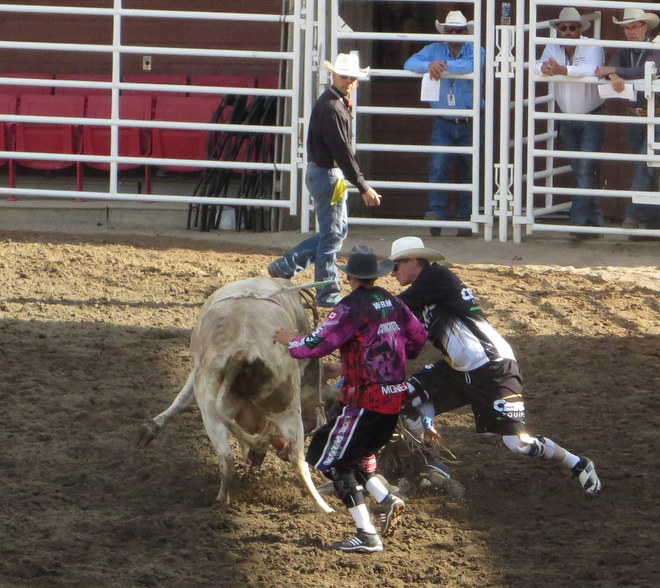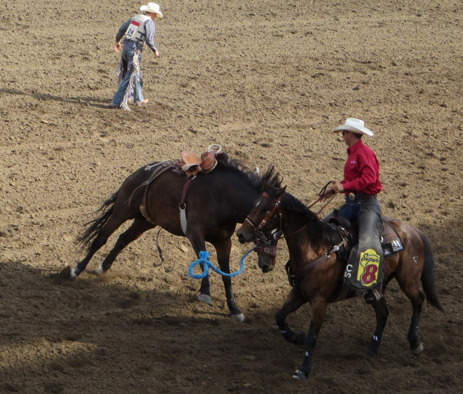 Сначала лошадки с седлом и без седла мотали ковбоев как Тузик грелку.