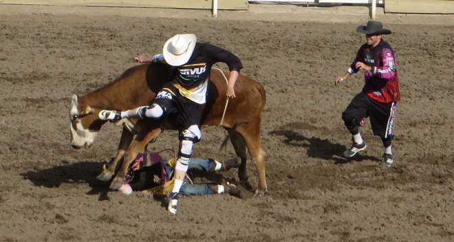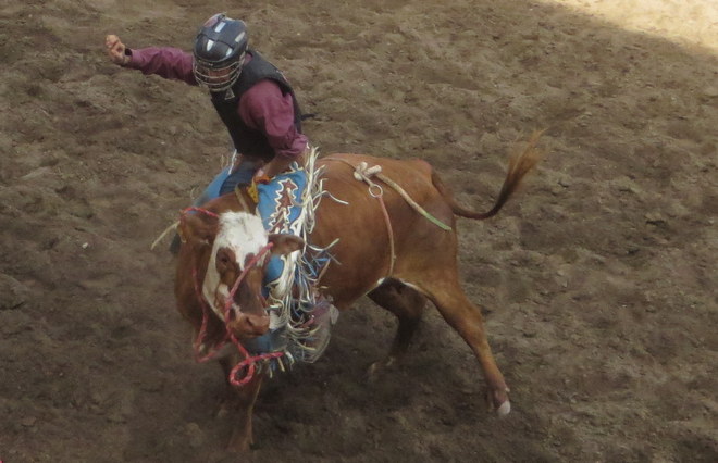 Наверное какой-то день был не самый удачный для ковбоев, но в этот раз было сразу несколько инцидентов, где ковбои были сильно травмированы. В этот раз нам показали соревнования в разделах лошадь под седлом, лошадь без седла, а также быки. Причем если на лошадях были все взрослые участники родео, то на быках выступали дети! Ну и соответственно быки были не те монстры рогатые, на которых выступают взрослые, а молодые бычки и даже коровы. Детям было наверное лет по десять- пятнадцать максимум.
