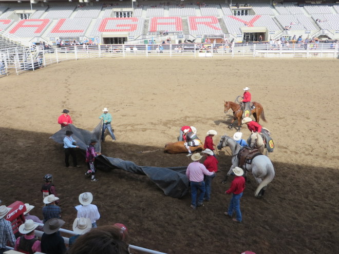 После завтрака всех пришедших приглашают на места, расположеные в зоне инфилд, где самые лучшие и самые дорогие места на Стампиде. То есть вы смотрите на все происходящее чуть не с растояния вытянутой руки. Конечно, эти места можно купить и на обычные мероприятия, но боюсь среди наших читателей не много таких любителей родео, чтобы платить несколько сотен баксов за эти места:) Меня лично жаба всегда душит:)
