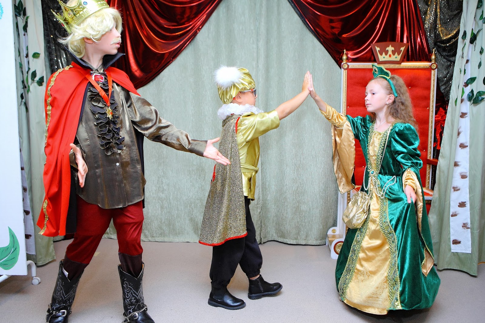 А еще очень важными являются еженедельные посещения уроков, без пропусков. Как только кто-то из детей театральной студии уезжает-улетает в отпуск-заболевает-пропускает, это все сразу отражается на остальных ребятах. Мизансцены на репетициях не полные, присутствующие на уроках дети начинают теряться, когда кто-то отсутствует..Понятное дело, отсутствующий ребенок потом прилетает, как чистый лист. Начинаем все заново 🙁