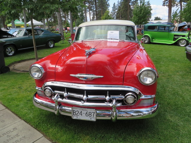 На дворе лето и наши авторы видимо все отдыхают, никто ничего не пишет, одна я отдуваюсь:) Ну ладно, выдюжу:) Главное рассказать и показать то есть что, другой вопрос, что не всегда есть на это время и возможность:) Итак, сегодня вторая часть раритетных машинок, которые мы посмотрели уже на шоу в Келовне. Выставки там проходят в довольно живописных местах, в парках, где машинкам дают самые лучшие и красивые места прямо на лужайках! Это для нас было очень удивительно! Вообще эти мероприятия были очень праздничными. Играла живая музыка, работали всякие выездные едальни, лотки различных компаний, а также торговали всем чем угодно мелкие предприниматели. В общем, очень все было мило, спокойно и душевно. Компании участники шоу, а это всякие страховщики, ремонтники и прочие, щедро раздавали детям, да и взрослым тоже, всякие сувениры со своими логотипами. Иза и тут, как на параде в Пентиктоне, разжилась подарками:) Получила красивый надувной мяч, всякие модельки машинок, и прочее:) Короче, все были счастливы и каждый нашел то, что хотел:)