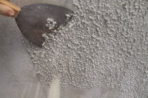 Все оказалось неожиданно:) Они пришпилили к потолку пленку по периметру предполагаемой зоны работ, и получилась эдакая полностью изолированная комнатка внутри квартиры. И все, что они делали с потолком, оставалось внутри этой комнатки:) Счистили весь попкорн (так тут называется пупырчатое покрытие потолка) в зоне дыры, при этом никакой пыли из зоны работ в квартиру не вылетело. Наложили на дыру специальный пластырь. И когда он подсох, притащили специальную машину для производства этого самого попкорна. Ну и соответственно распылили новый попкорн на пластырь на потолке.
