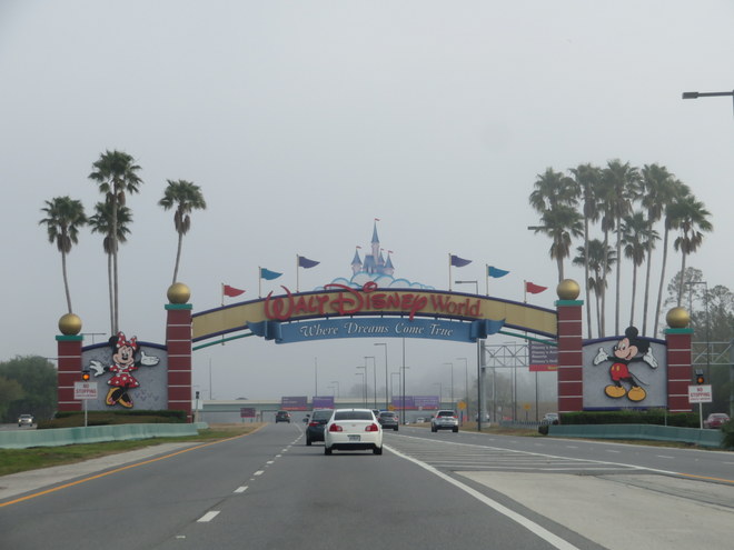 В парк мы поехали на нашей рентной машине. Добираться до парков там не сложно, но мы ехали по GPS на мобильном телефоне. От нашей виллы до парка мы ехали 25 минут. Въездов в парки Disney World несколько, но все они централизованные. Типа въехал сначала как бы во все парки, а потом уже внутри идет разводка по каждому парку отдельно, следите за указателями, они очень доходчиво и вовремя все указывают:) Ну или слушайте GPS она тоже все говорит по умному:)