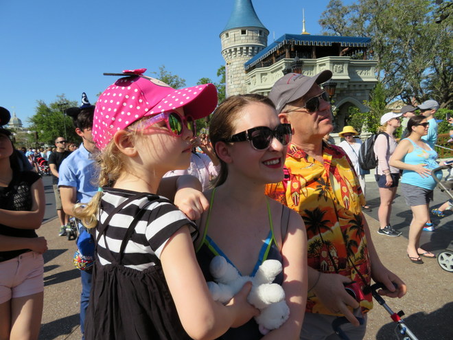 На следующий день, который был самый лучший по погоде, мы запланировали поход в первый парк Magic Kingdom, который был первым и основным у Диснея. Иза у нас поклонница всяких принцессок, потому этот парк, можно сказать, наше все:) Перед сном мы еще раз изучили карту парка, наметили план, типа куда сначала бежать и что делать. Потому как парк довольно большой, и такая предварительная пристрелка хорошее дело. Понятно, что всякие детали вы уже будете смотреть по карте прямо в парке, но знать основной принцип устройства парка и расположение ваших главных объектов заранее, я думаю необходимо!