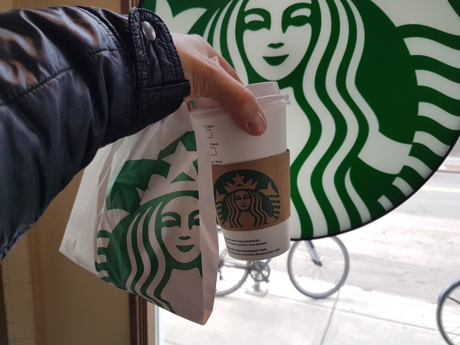 Не нарушая своих традиций, по пути я зашла в Старбакс. Популярное кафе было заполнено завтракающими товарищами.