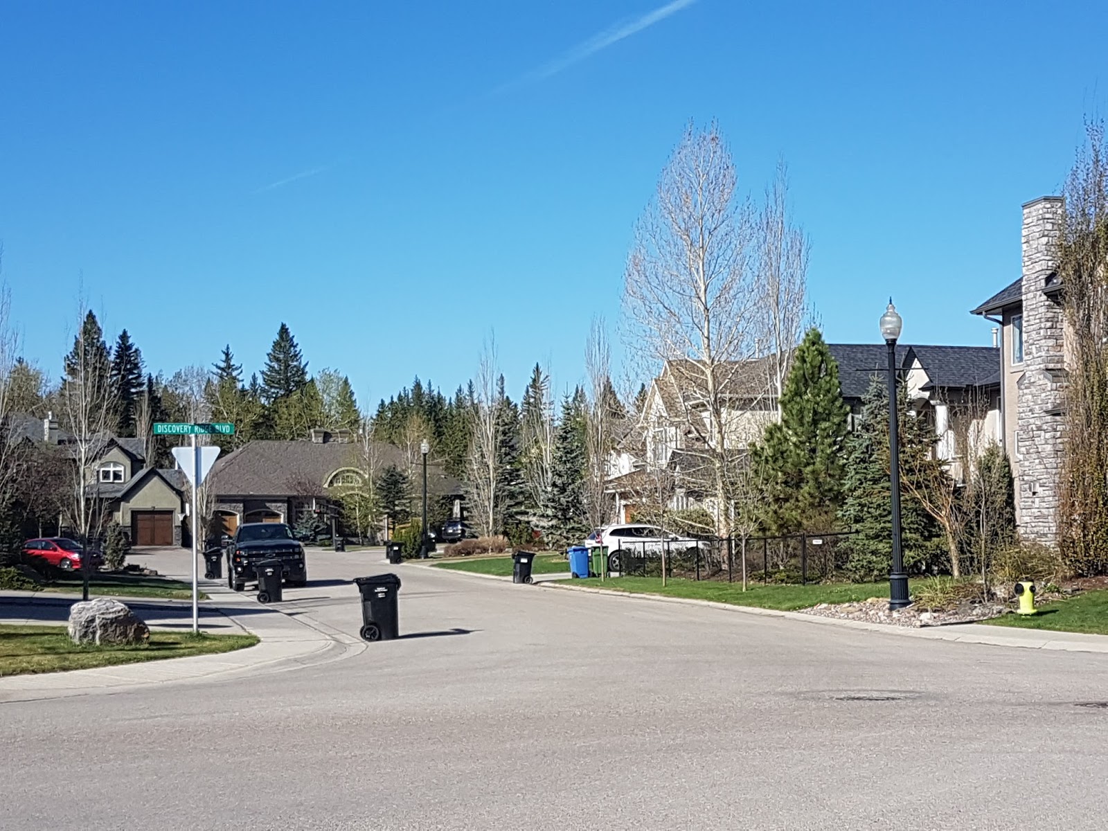 На каждом шагу стоят баки для мусора. Их выставляют в определенные дни недели, чтоб мусоровоз забирал мусор. У нас в районе на каждый дом идет три бака: черный — для неперерабатываемого мусора, голубой — для перерабатываемого, зеленый — для пищевых отходов и растительного мусора. Еще где-то раз в три месяца Андрей ездит сдавать стеклянные бутылки, пластиковые  и картонные контейнеры  от молочки в специальный пункт. Они тоже идут на переработку. За это можно получить немного денег.