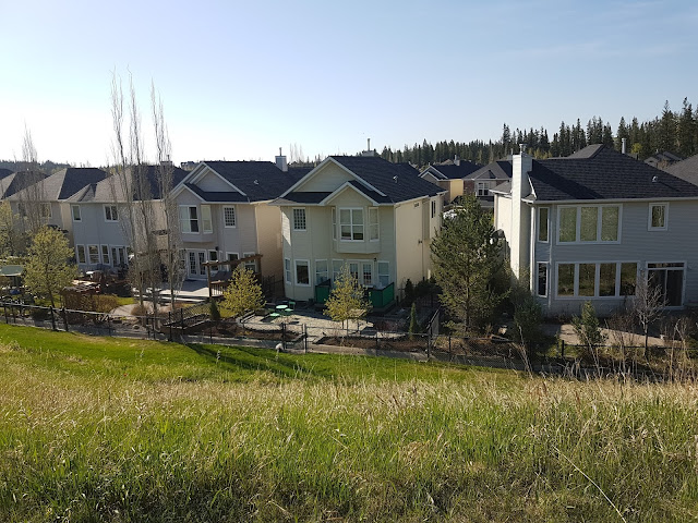 Между домами видна дорожка, ведущая в лес. Это мог бы быть мой новый маршрут, там очень удобно ходить, везде есть пешеходные тропинки. Но по лесу я одна не хожу. Боюсь диких зверей. Я уже как-то писала, что они не редки в наших краях 😉