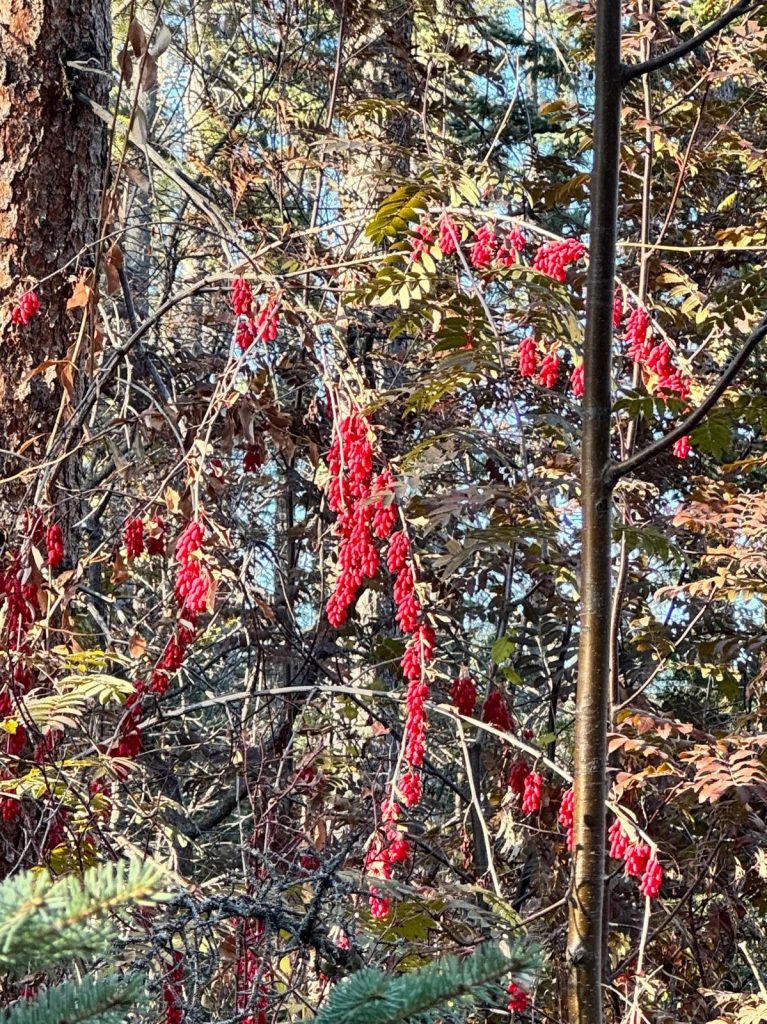 Начиная от просто шиповника, до красной облепихи, боярышника, калины, барбариса, саскатунберри, черемухи, земляники, малины, мяты и так далее:) И Серега у нас большой любитель, знаток и ценитель леса и его даров. Потому он часто возвращается из прогулок по лесу с добычей, которую мы потом съедаем. Делаем свежее варенье из ягод (не варим, а замораживаем перетертые с небольшим количеством сахара), и что-то сушим. Барбарис чудесно идет к рису и плову:) В общем прикалываемся как можем:)