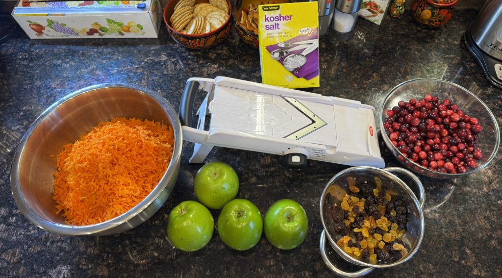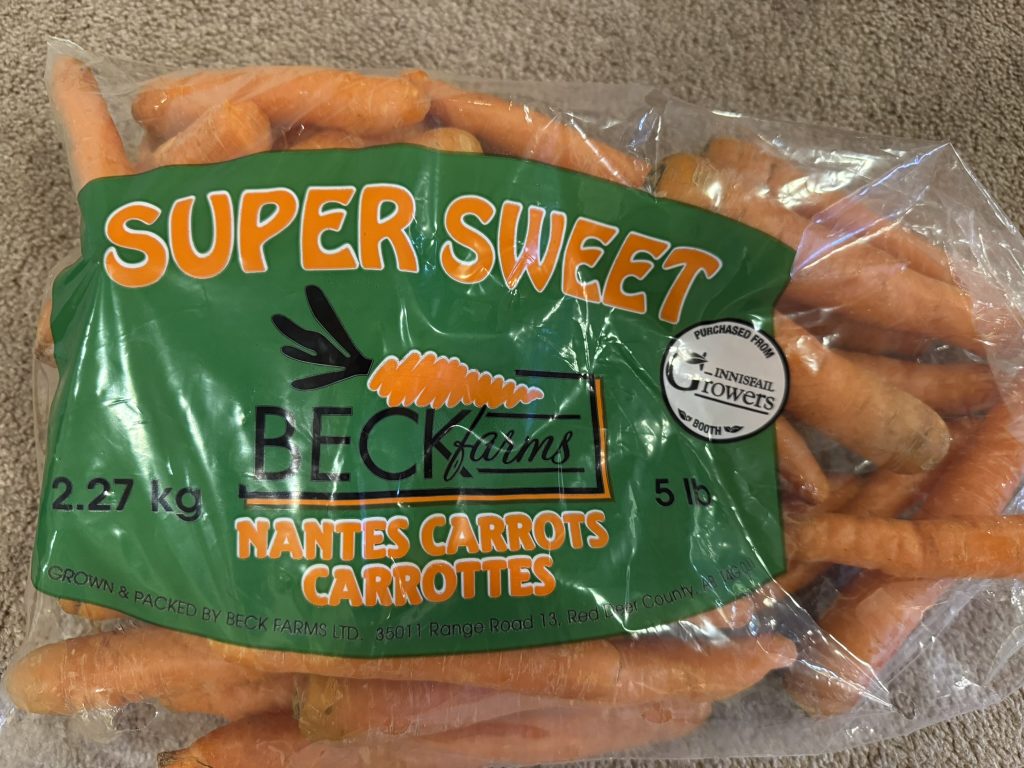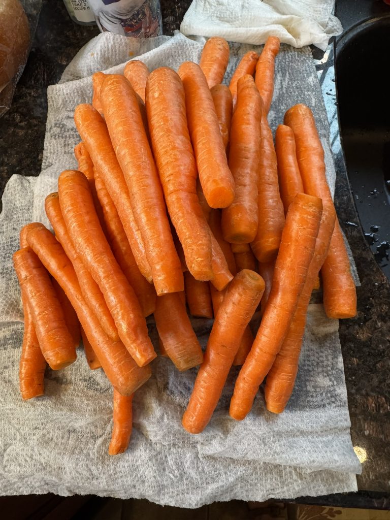 Также само собой нужна морковка. Я люблю очень сладкую морковку и покупаю ее в одном месте на рынке у производителей из Innisfail (это место недалеко от Калгари). Там не то земля особенная, не то агрономы отличные, но картошка и морковка у них невероятно вкусные и сладкие, а также чудесная перловка и кольраби! Морковки нужно из расчета 200 граммов морковки на 800 граммов капусты. Это дело вообще не принципиально и до грамма взвешивать не стоит:) Берите морковки столько, сколько посчитаете на ваш вкус нужным! На процесс квашения это не влияет. У меня в этот раз вообще получился прикол. Капуста кончилась, а натертая морковка осталась в большом количестве:) Но я все равно засолила этот вариант, где капусты было существенно меньше, чем морковки:) В итоге получилось тоже очень вкусно!:) Эдакая квашеная морковка:)