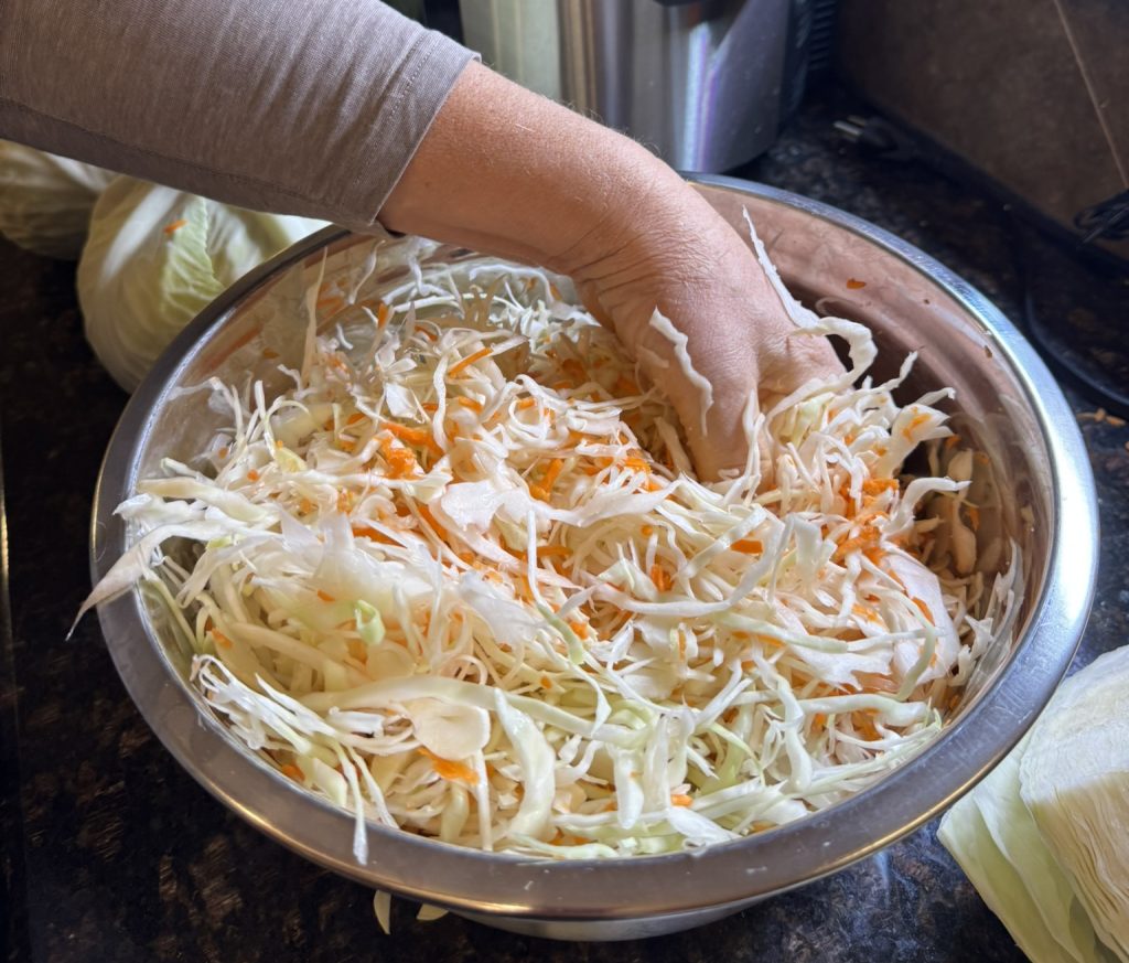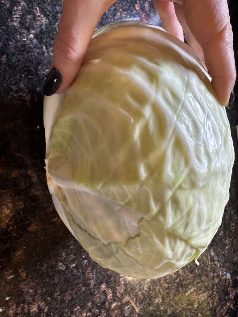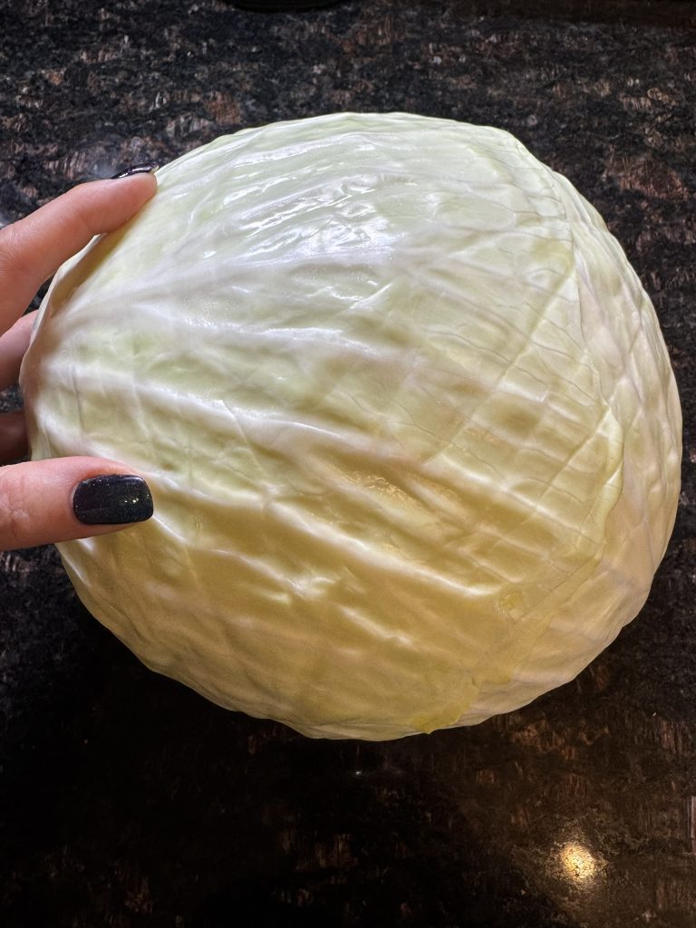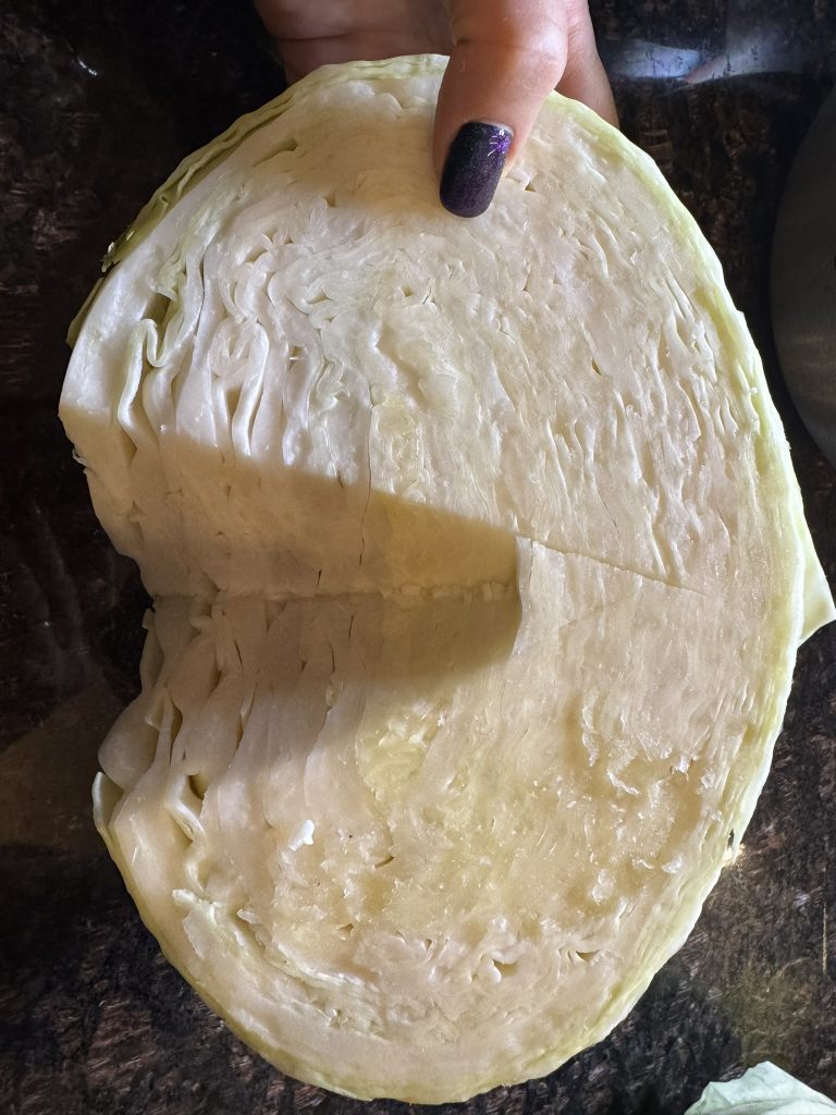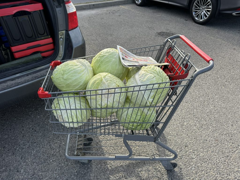 Главное найти нужную правильную капусту! Я несколько лет нахожу ее в русском магазине на Херитедж (Europian Deli). В октябре она уже такая, как надо. Плотные и тяжелые кочаны, приплюснутые и белые, и сладковатые листья. Небольшой кочан весит порядка 4 кг. Такая капуста в этом магазине в прошлом году была до января:)