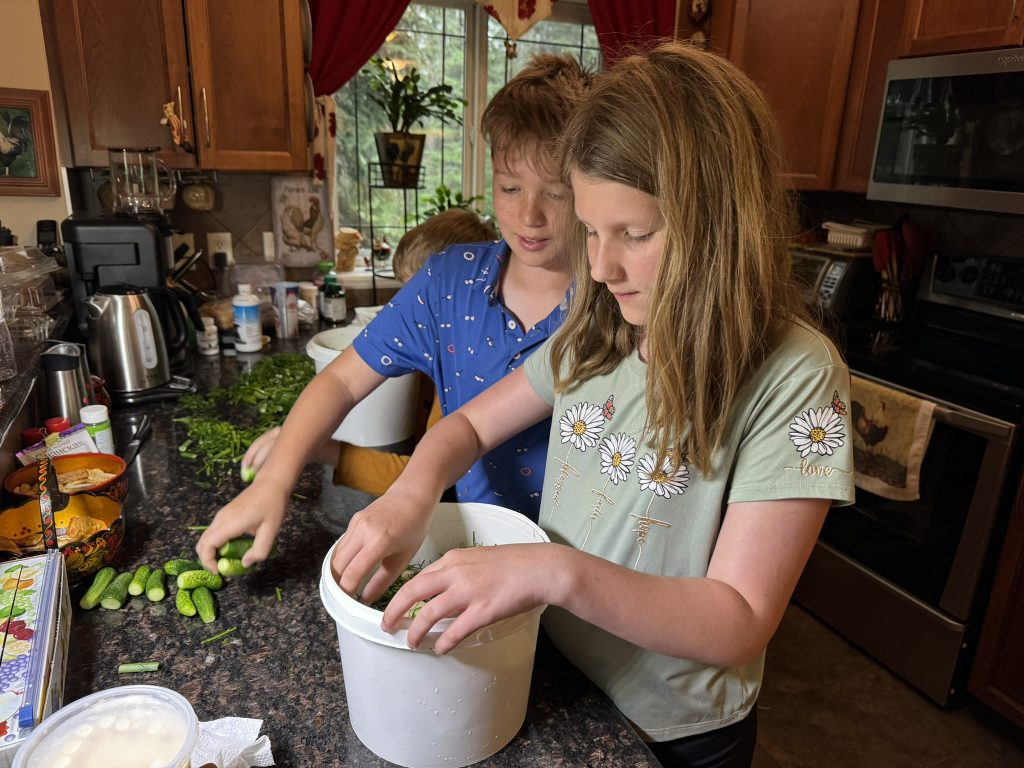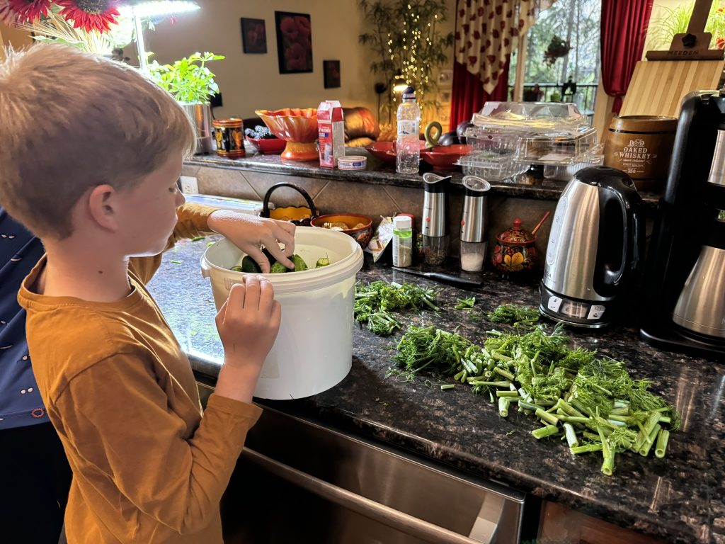 Мы с ними делали малосольные огурчики. Они сами выбирали все нужное на рынке, а потом все вместе работали дома. И они были поражены тем, как все просто!:)
