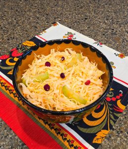 Кроме капусты еще понадобится правильная соль. Это обычная крупная соль без каких-либо добавок. Я беру крупную кашерную морскую соль. А также нужны зеленые яблоки. Здесь это сорт Granny Smith, на родине я использовала сорт Семеренко. Яблок получается по два-три на ведерко. Когда они вместе с капустой проквасятся, то вы получаете бонусом еще и моченые яблоки!:)